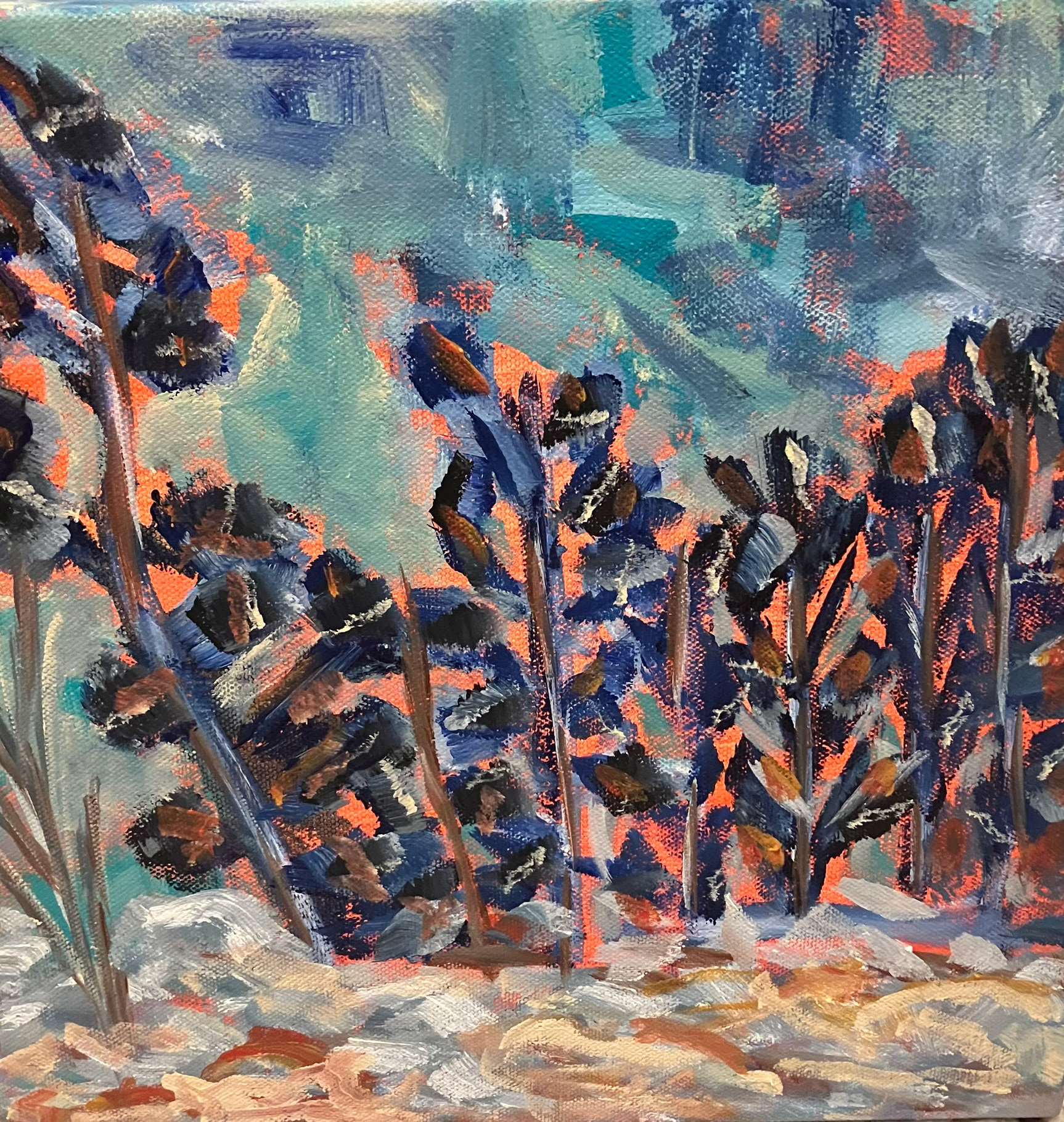 I come from a family of painters: parents and four siblings, all of whom enjoy painting. In 2012, I exchanged my CPA pencil for a palette knife and paintbrush. As an abstract landscape artist in both oil and acrylic, I painted my first 100 paintings without any art lessons whatsoever. This allowed the artist within to find expression without being overshadowed by the rules (of the art world).